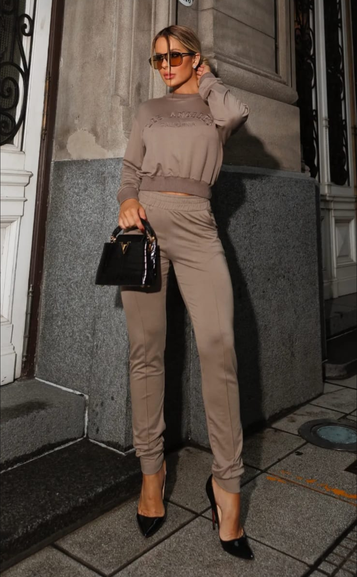Conjunto calça e blusa.